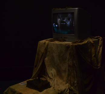 En activant le levier vers la droite ou la gauche on peut passer d’une vidéo à une autre, le spectateur devient acteur et montre son implication dans l’apocalypse par la conséquence de SES actions. L’installation est notre réalité à nous avec la nature qui reprend ses droits aussi dans la nôtre.